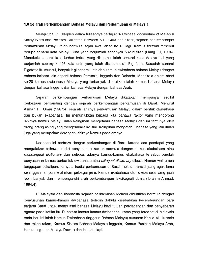 Ditulis oleh aan setyawan dipublikasikan pada september 26th at 7:40pm. 1.0 sejarah perkembangan bahasa melayu dan perkamusan di malaysia mengikut c.o. 117 pages · 2014 · 1.24 mb · 198 downloads· indonesian. Terdapat dua pandangan tentang tarikh bermulanya bidang perkamusan di alam melayu. Apa yang sering kita baca setiap 17 agustus merupakan hasil rumusan proklamasi di masa itu.