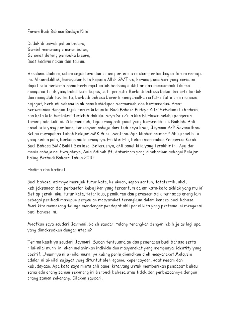Tanggungjawab siapa forum remaja pencetus kecemerlangan diri (pengerusi) forum remaja jendela kematangan minda (panel 1) forum remaja pintu kesuburan rohani (panel 2) forum remaja membentuk insan insani (panel. Download contoh teks forum remaja. Wb alhamdulillahirabbil 'alamin washolatu wassalamu'ala asrafil anbiyai wal mursalin anda yang akan mengadakan rapat, cari contoh teks pembawa acara rapat, teks mc untuk kegiatan rapat. Berisi contoh teks eksemplum tentang liburan, sahabat, pendidikan, pengalaman pribadi diri sendiri, jatuh dari sepeda, abstrak, beserta strukturnya lengkap. Tanggungjawab siapa forum remaja pencetus kecemerlangan diri (pengerusi) ( pengerusi) forum remaja jendela kematangan minda (panel 1) forum remaja pintu kesuburan rohani (panel 2) forum remaja membentuk insan. Berikut contoh teks ceramah singkat tentang sabar. Contoh teks diskusi tentang narkoba. Contoh teks forum remaja pendisiplinan pelajar : Bingung juga karena belum persiapan teks seperti apa untuk acara kedepan? Contoh teks diskusi merupakan adu argument diantara pro dan kontra terhadap suatu permasalahan atau tema tertentu. Tetapi apakah hal ini akan berdampak ketika mereka dewasa nanti? Teks mc ikatan remaja masjid (irmas). So please help us by uploading 1 new document or like us to download
